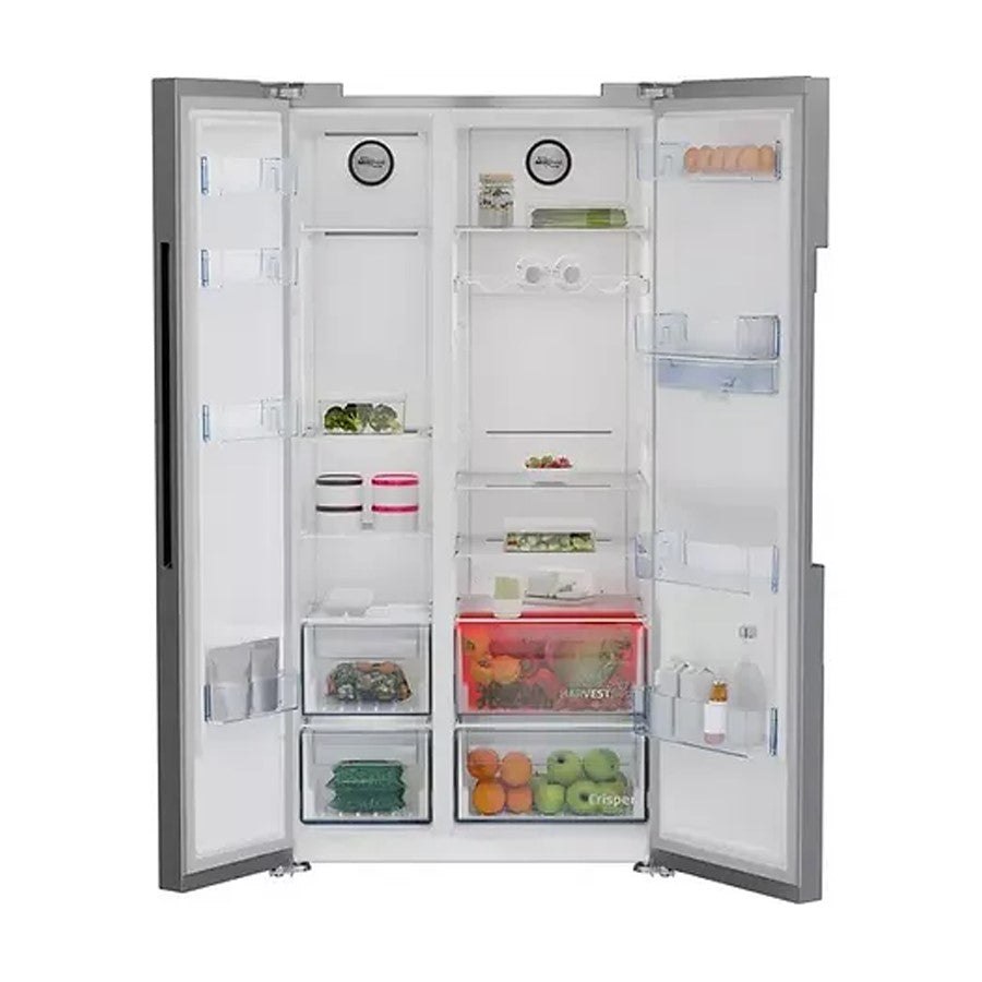 With HarvestFresh™ technology, this Freestanding American Style Fridge Freezer preserves essential vitamins in your fruits and vegetables using advanced three-colour light technology to maintain their freshness longer. NeoFrost™ Dual Cooling ensures optimal humidity levels in the fridge and a dry environment in the freezer, preventing odour transfer. Additionally, the non-plumbed water dispenser offers the convenience of chilled water on demand.